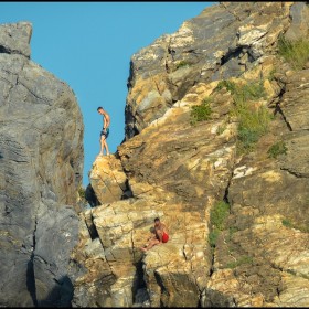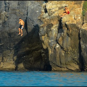 Diving in a clear sea